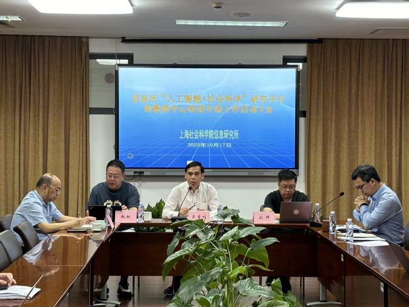 10月17日上午,信息研究所召开“人工智能+社会科学”研究平台和数据中心转型升级工作启动会。上海社会科学院副院长吴雪明、院信息办主任赵虹、信息研究所所长刘炜、副所长丁波涛、副所长汪怿出席会议,信息所全体科研与管理人员参加会议。会议由丁波涛主持。